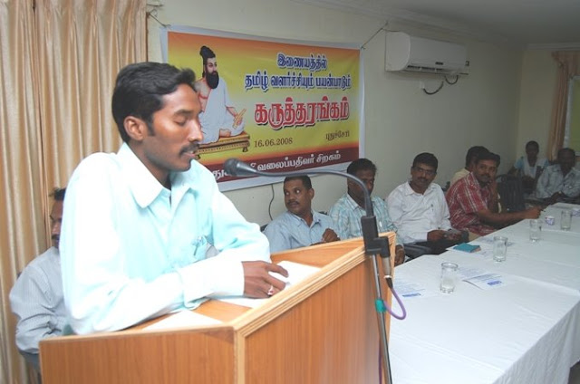 இணையத்தில் தமிழின் வளர்ச்சியை பறைசாற்று ம் வலைப்பூக்கள் தான் வேகமாக ஊடகமாக செயல்படுகின்றன. நாகைப்பட்டினத்தில் அய்யா பழ.நெடுமாறன் அவர்கள் ஈழத்தமிழர்களுக்காக திரட்டப்பட்ட உயிர் காக்கும் உணவுப் பொருட்களை படகுகளில் சென்று கொடுக்கும் போராட்டம் நடத்திய போது அதனை நேரடியாக நொடிக்கு நொடி இணையதளத்தில் பதிவிட்டோம். இது போன்ற வேகமான மக்கள் ஊடகத்தை நாம் இன்னும் வளர்த்தெடுக்க வேண்டும் என்றார்.